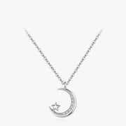 Capture the beauty of the night with the Moonlit Star Pendant. This 925 sterling silver necklace features a delicate crescent moon and sparkling CZ star, symbolizing the endless wonders of the universe. Perfect for adding a touch of celestial elegance to your outfit, whether for casual wear or a special occasion.