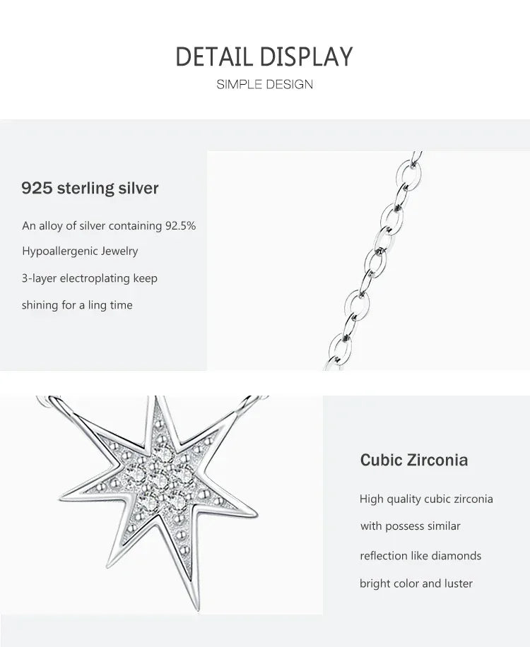 The Starry Night Glow Necklace is a stunning tribute to the beauty of the night sky. Crafted from genuine 925 sterling silver, this pendant features a brilliant cubic zirconia star that catches the light with every movement. Whether you're dressing for an evening event or adding a little magic to your daily look, this necklace is your perfect accessory for special moments.