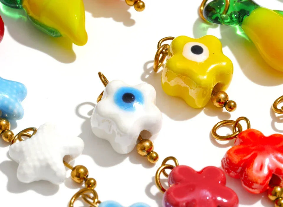 Cute Enamel Enamel Star Flower Cherry Strawberry DIY Accessories Charm Pendants for Necklace Bracelet Earrings Making