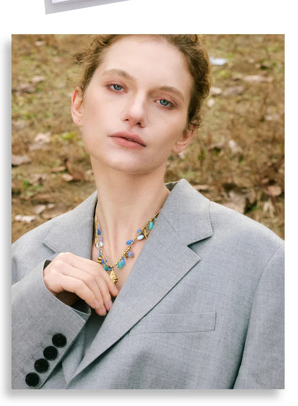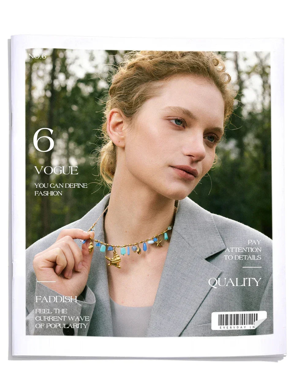 Preserve the oceanic charm of your necklace effortlessly. Crafted from stainless steel with delicate resin and metal charms, symbolizing a perfect blend of artistry and durability. Avoid harsh chemicals to maintain its vibrant beauty.