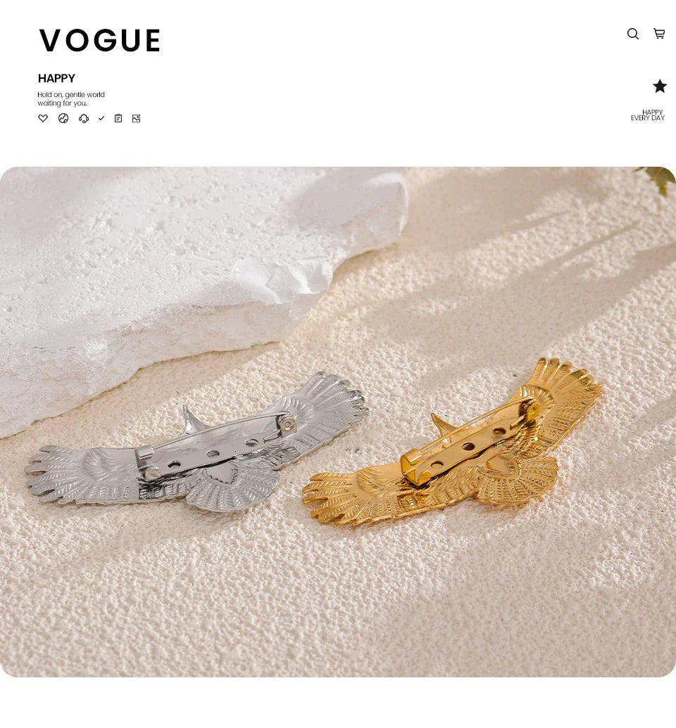 Preserve the powerful elegance of your Regal Bird Brooch effortlessly. Crafted from 316L stainless steel, symbolizing a perfect blend of distinctive style and bold sophistication.