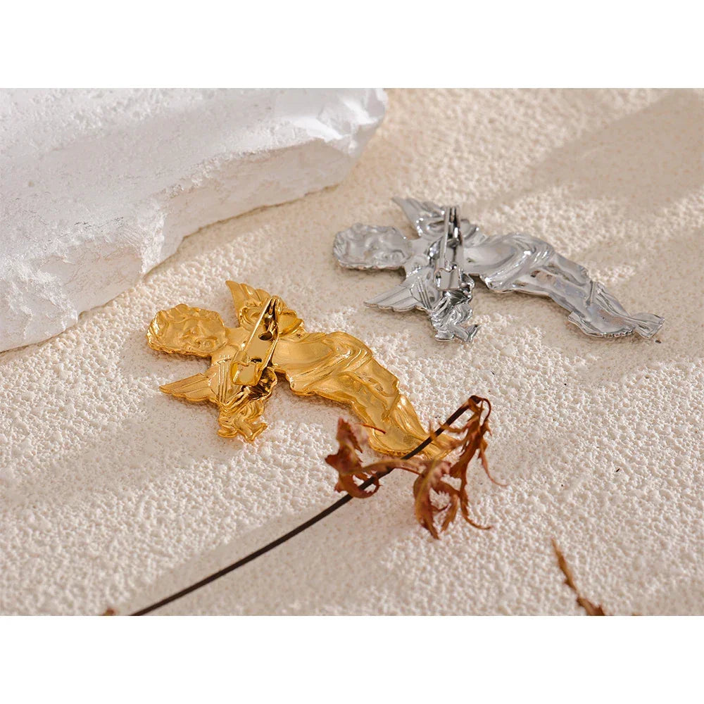 The violin and wings are crafted from stainless steel for lasting, water-resistant wear. The intricate details of the strings and feathers are precision-cut. This piece can be personalized for a unique touch. It features a secure pin clasp, making a reliable statement of your story.