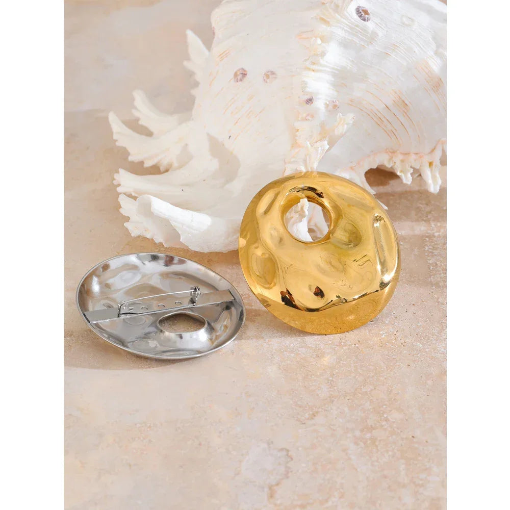 Preserve the unique style of your Hammered Circle Pin effortlessly. Crafted from waterproof stainless steel, symbolizing a perfect blend of bold texture and universal design.