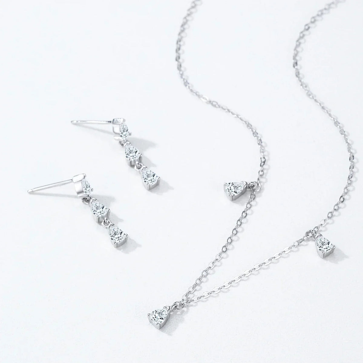 Illuminez votre élégance avec la parure Gouttes Étoilées, confectionnée en argent sterling 925. Composée de délicates boucles d'oreilles en forme de goutte et d'un collier assorti, cette parure capture la beauté du ciel étoilé. Conçue pour les mariages, les fiançailles et les moments intemporels, elle apporte un charme radieux à toutes vos tenues. Sublimez votre style avec une grâce céleste.